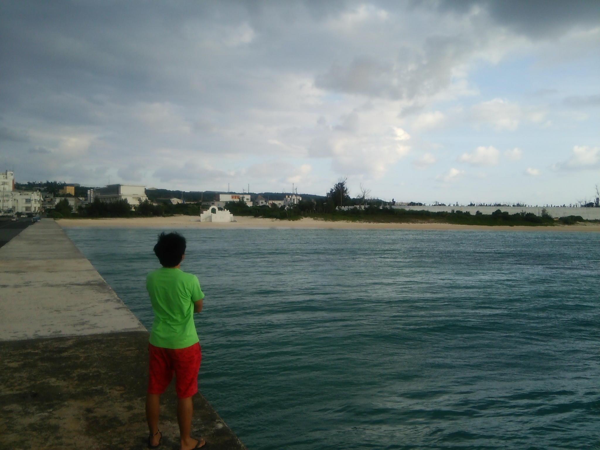 海からの風が強く、防波堤の上で手を広げると煽られる感じですね。