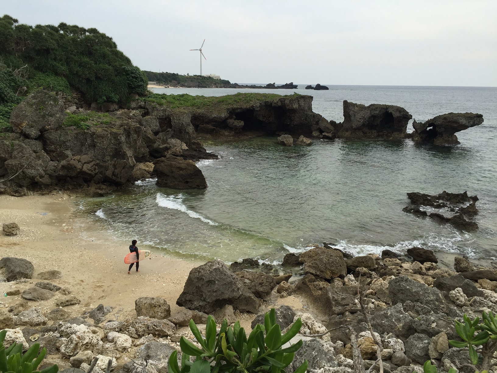 本日は曇り、時々雨模様でTシャツ・短パンだと少々寒い与論島。