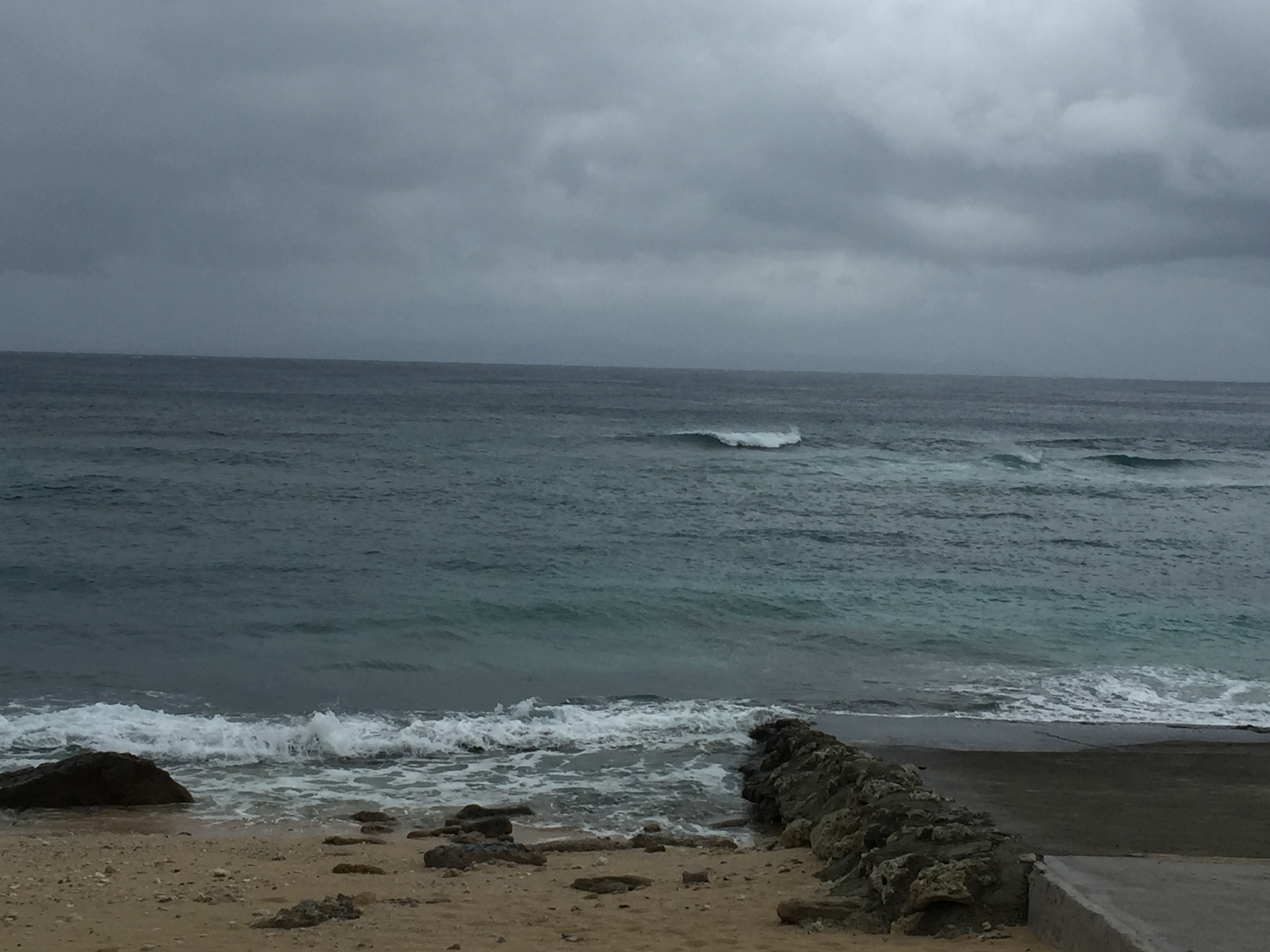 本日は荒れた天気の与論島。