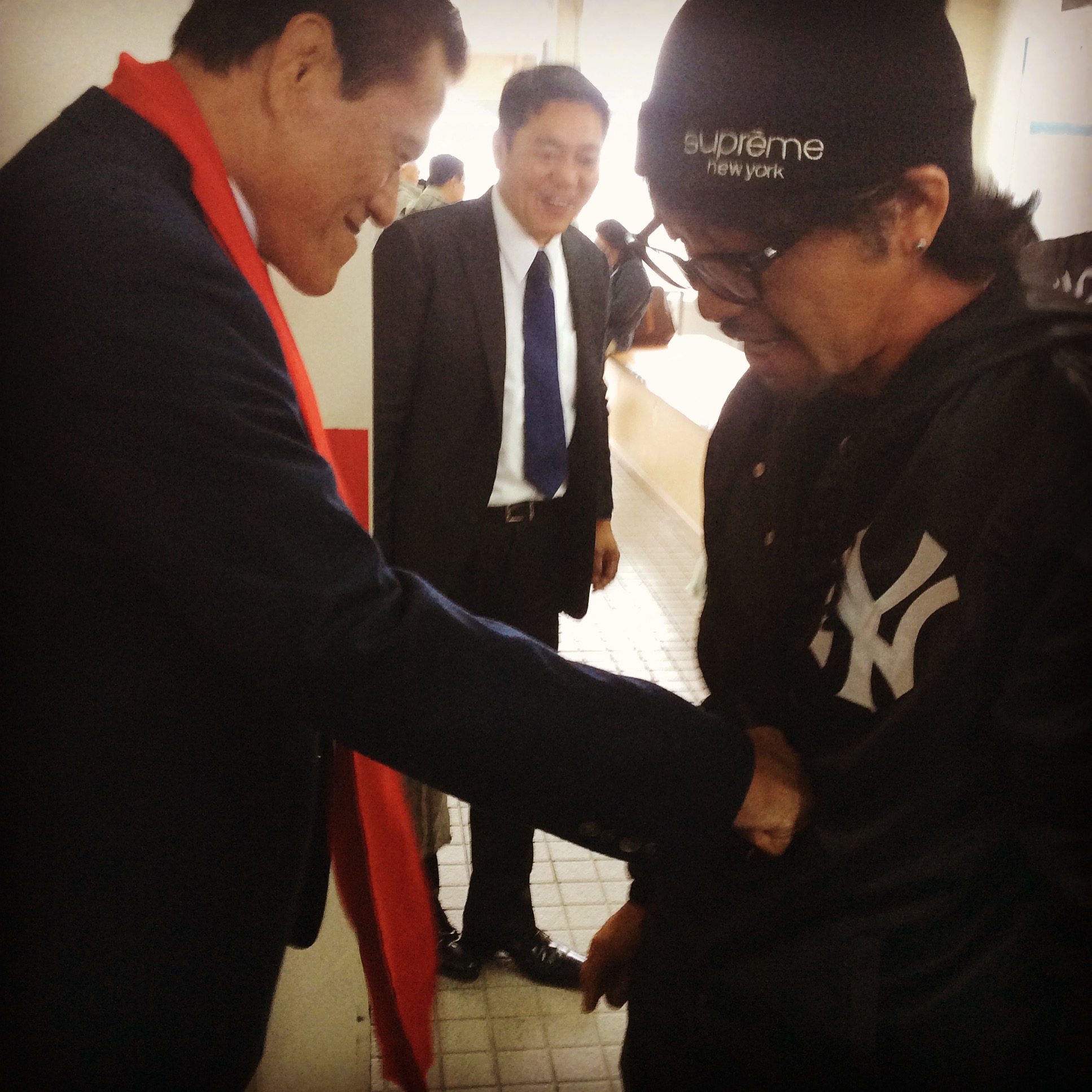 甘いマスクは商売道具なんで顔面は避けて腹に一発『闘魂注入』!!して頂きましたw