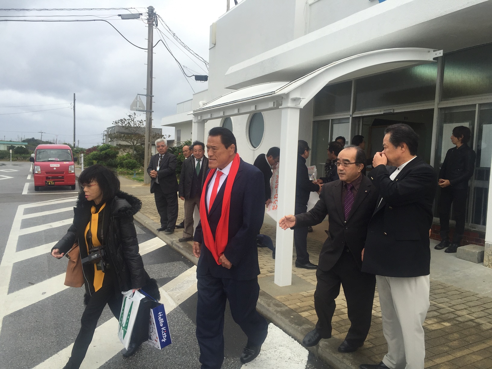 お偉いさんにガッチリガードされてますね...。