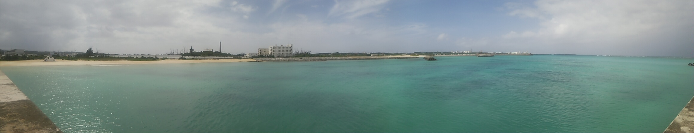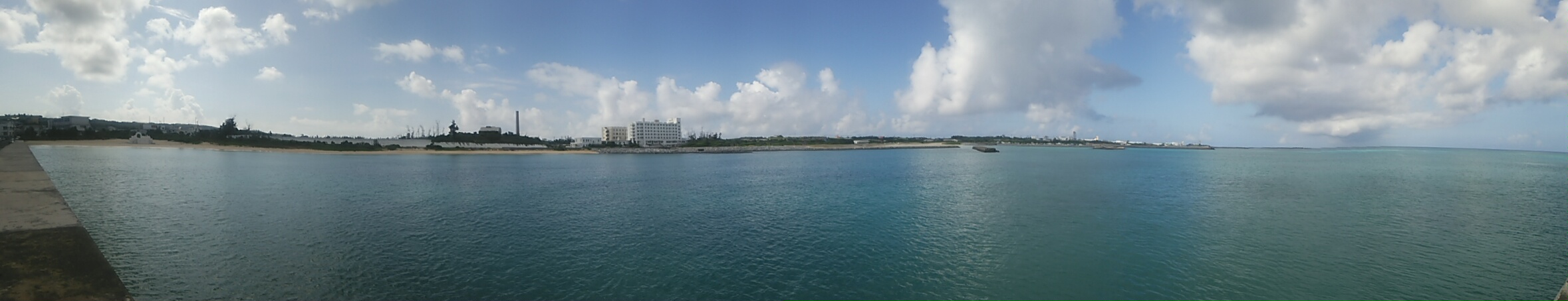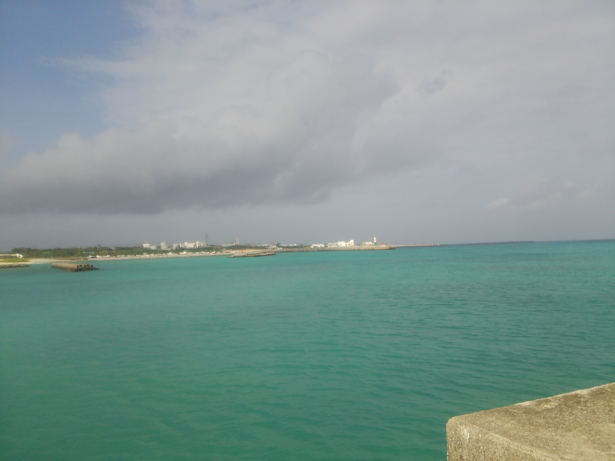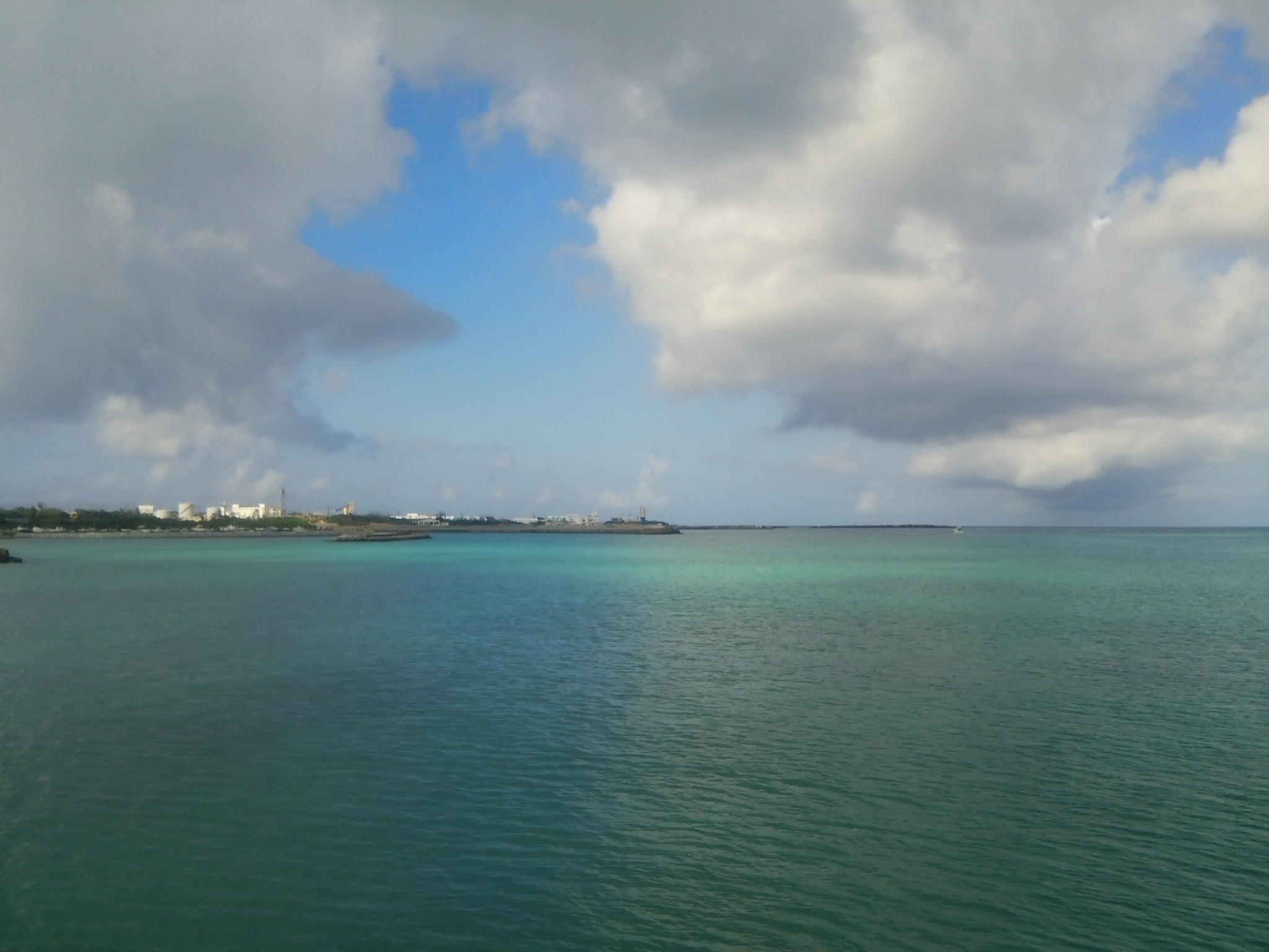 波は穏やか、そよ風が島から海へと吹き抜けております。